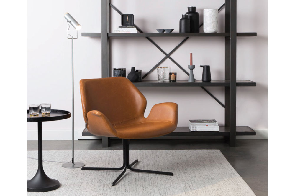 Sản phẩm mang đến sự thoải mái nhờ vào phần tựa lưng và tay được thiết kế vừa vặn với cơ thể, lớp da bọc giúp tăng độ bền và tính thẩm mĩ. Kết hợp với chân kim loại xoay, armchair có thể trở thành ghế đọc sách và thư giãn trong mọi không gian