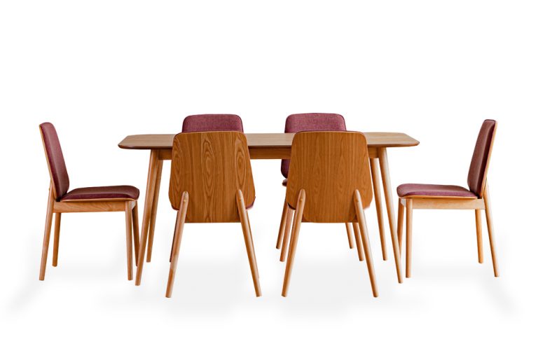 Bộ bàn ăn Tristan Belfast 6 chỗ vải đỏ với với mặt bàn MDF phủ Veneer gỗ Tần Bì (ash). Mặt bàn được bao phủ bởi những đường vân gỗ tự nhiên hình thoi đối xứng tâm mang lại cho người dùng cảm giác hiện đại và mới mẻ. Chân bàn với thiết kế đặc biệt và các góc cạnh được gia công tỉ mỉ. Bề mặt ghế với phần đệm ngồi màu đỏ giúp không gian thêm sang trọng. Ghế được thiết kế đồng bộ cùng bàn ăn với thiết kế cứng cáp, rộng rãi cùng phần tựa lưng mềm mại tạo cảm giác thoải mái khi sử dụng.